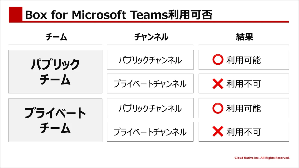 - Box for Microsoft Teamsが利用できるかはユースケース次第ですが、「Boxへのコンテンツ集約する」ことを重要視した場合、有効な手段になり得ると筆者は考えています。