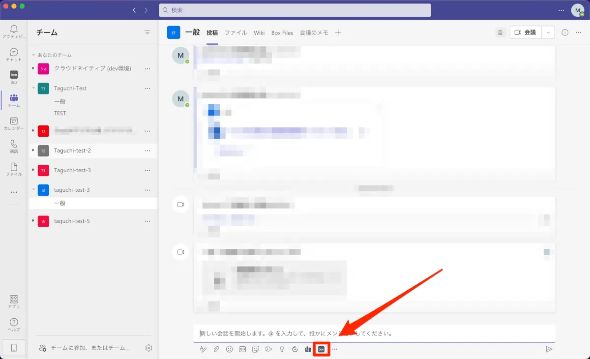 Box for Teams を有効化した後に、Teamsのチャンネルには「Boxボタン」が出現します。