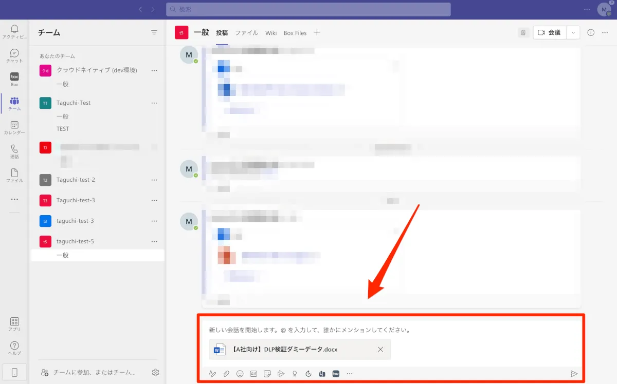 OneDrive /SharePointを閉塞している場合、プライベートチャネルではファイル共有ができませんので、プライベートチャネルでの、社内でも内密にしたいファイル共有のワークアラウンドとしては、手動でBoxに当該ファイルを格納して、リンクを共有する手法が考えられます。