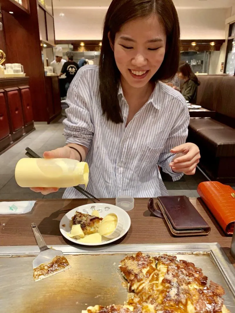 カウンター席もあって、お一人様でも入りやすい雰囲気。ランチ予算は1,000円前後。お腹が空いていたので、カロリー高くてお腹にたまりそうな豚チーズのお好み焼きを頼んだら、半分でお腹いっぱいになってしまい、最後としきさんに協力していただきました。優しい・・・