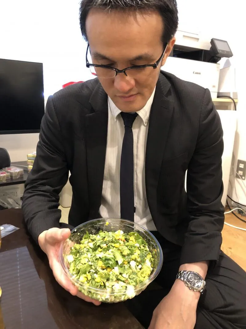 バスケは今でもプレーしている様子。プレー後は焼き肉を食べている様子がよく、facebookにアップされています。ちなみに、野菜が嫌い。なのに、ダイエットとしてWeWorkに来た時はクリスプアンドサラダワークスのサラダを「全然減らない」と言いながら1時間位かけて頑張って食べている様子を目にします。