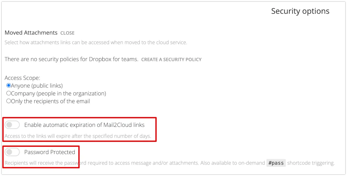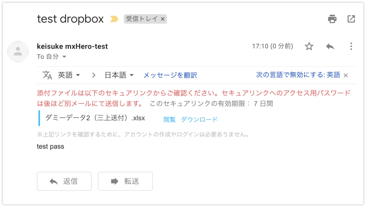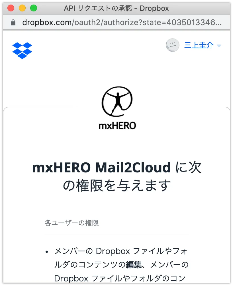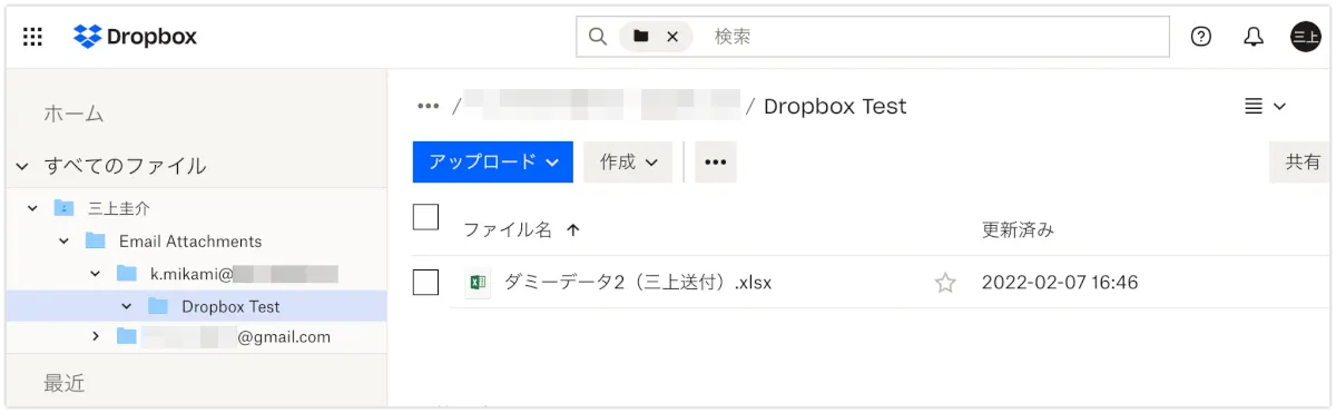 mxHero側の設定値が以下の場合の保存のされ方をDropbox側から見ていきます。