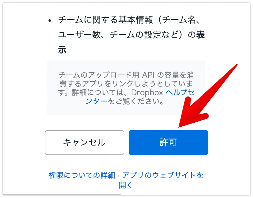 ポップアップが表示されますので内容を確認して許可します。