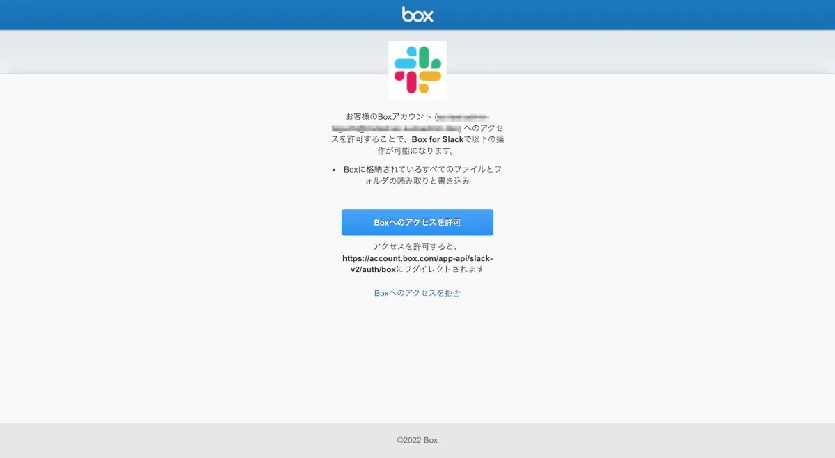 3) 表示されるメッセージに従って Box にサインインし、Slack で認証します。