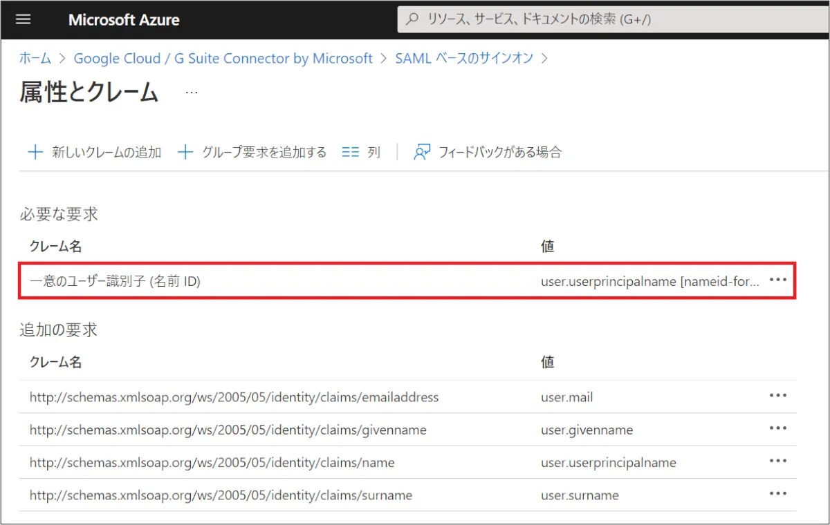 ④ [一意のユーザー識別子 (名前 ID) ] をクリック。