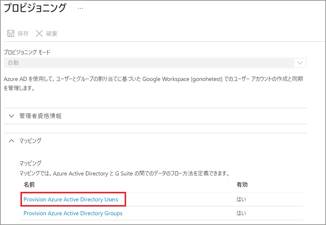 ④ [マッピング] > [Provision Azure Active Directory Users] をクリック。