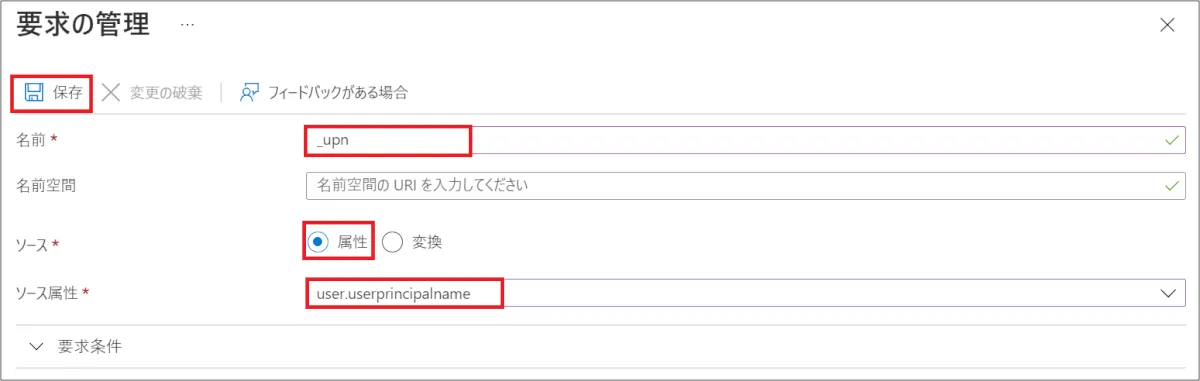 - 値:user.userprincipalname