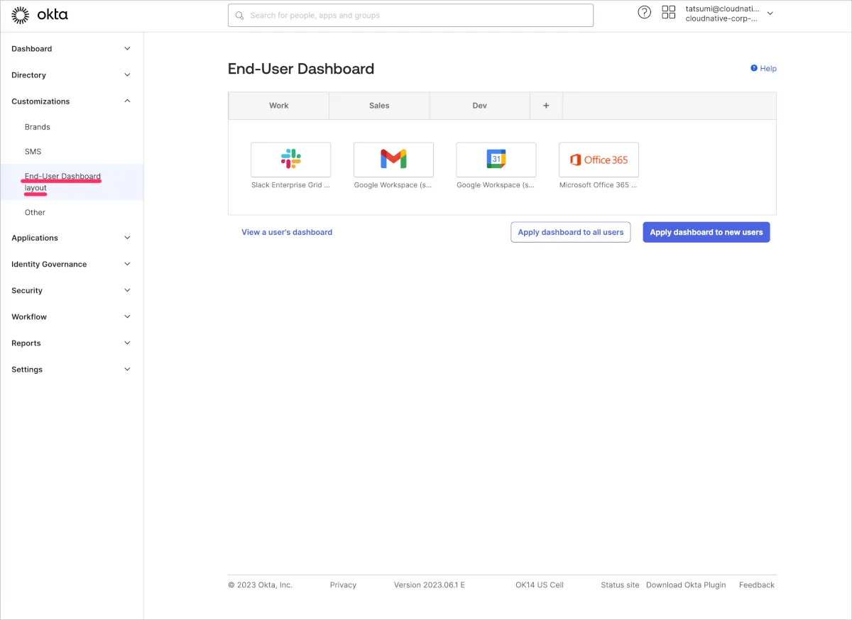 この設定は組織単位で適用されますが、個人がダッシュボードのレイアウトを自由に変更することができます。Okta管理者が並び順を固定化しユーザーが変更不可とすることはできません。