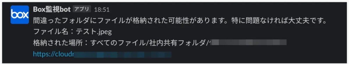 なお、通知先は弊社ではSlackにしていますが、例えばTeamsなどへも通知することが可能です。また、照合は正規表現で任意に指定可能であるため、例えば格納先の取り違えだけでなく、見積書と請求書の取り違えなど、表記揺れにさえ注意すれば、任意のものを検出して、通知や移動することなどが可能です。