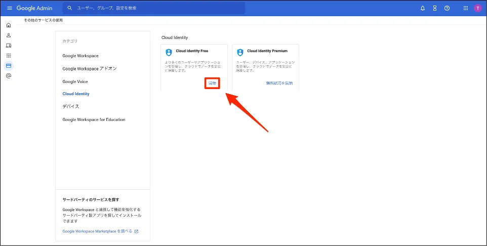 1. Cloud Identity Free(50ライセンスまで無料) のライセンスを有効化する