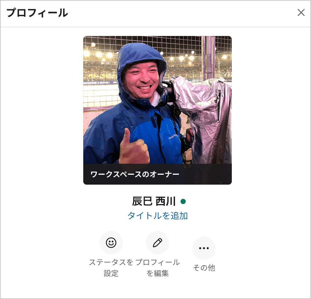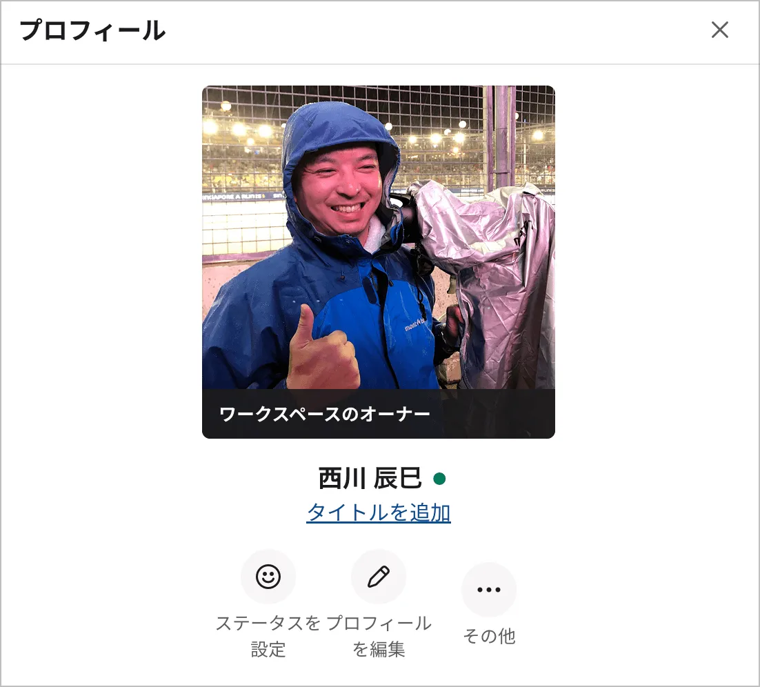 - Slack上で氏名が以下のように漢字表記で性 名の順番で表記されているかを確認します。