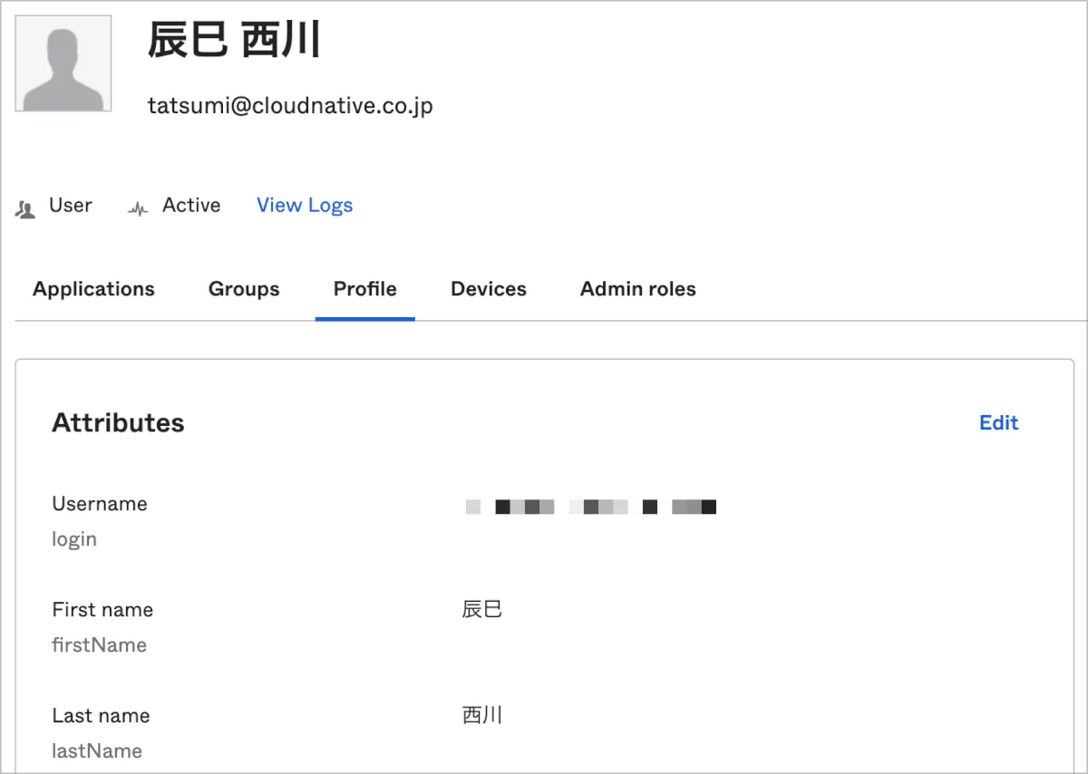 - OktaダッシュボードからSSO認証を実行し、新たな認証が実行された場合でも氏名が上書きされないことを確認します。