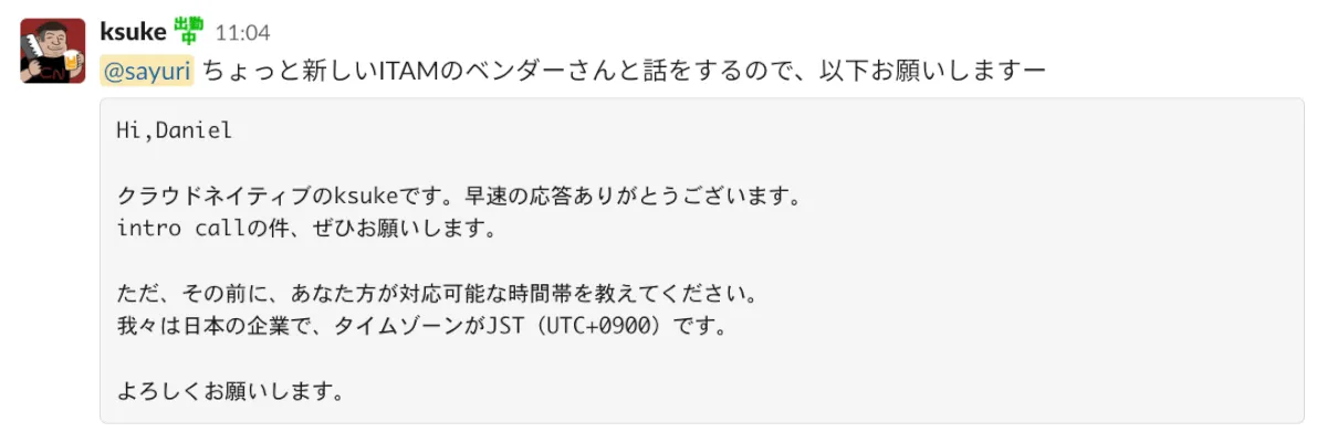 検証ではベンダーへの問い合わせやフィードバックを行うため、海外とのやりとりも多いです。
