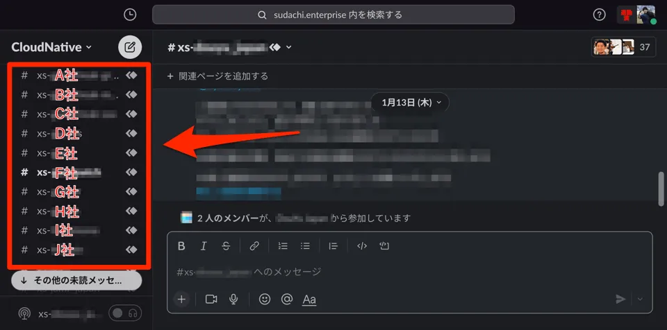 前提としてSlackでは「Slack Connect」という機能があり、違うテナント(ワークスペース)のチャンネル同士を接続して、シームレスなコラボレーションを行うことができます。クラウドネイティブのSlackでは、この機能を利用してお客様と繋がりまくっています。