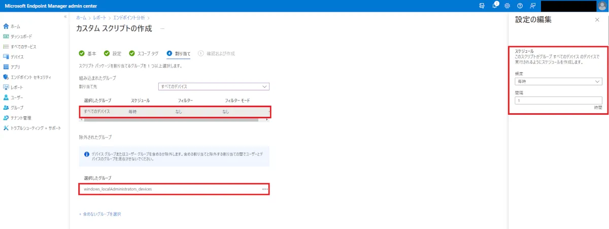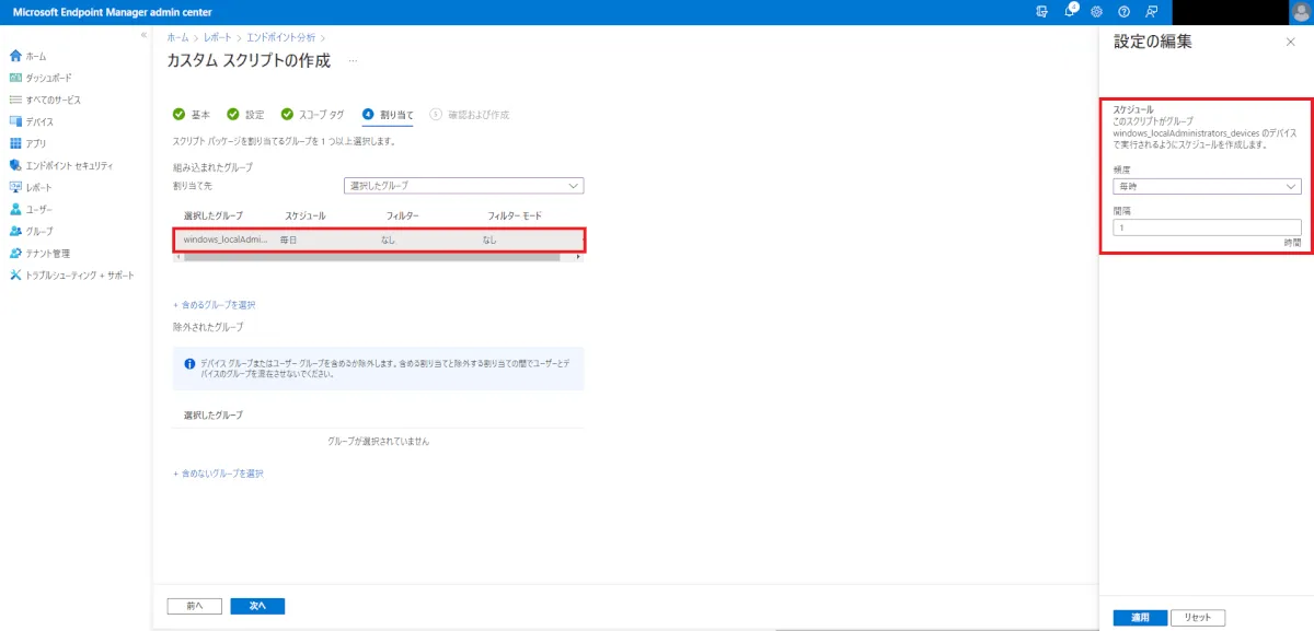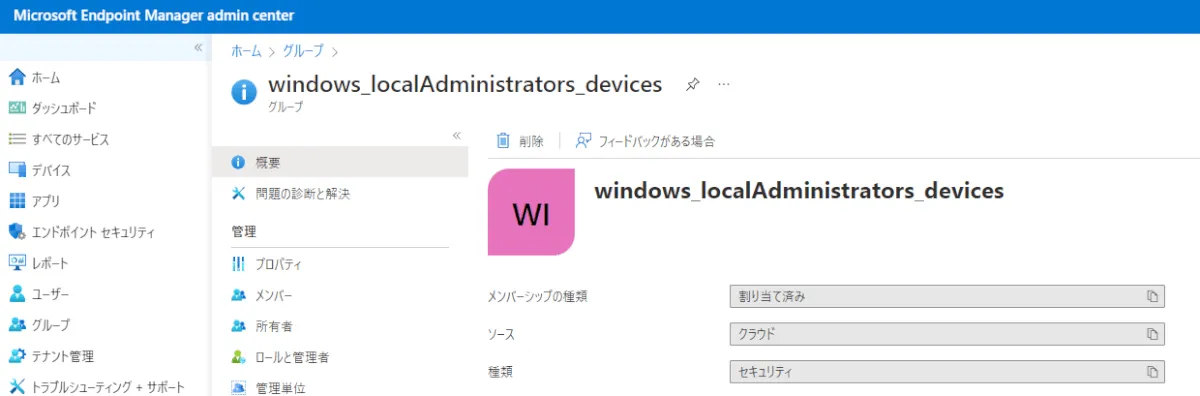 エンドユーザーにてローカル管理者権限が必要となる操作が完了した後、[プロアクティブな修復パッケージの登録 – 事前準備 ①] にて作成した、Azure AD セキュリティグループからテスト用デバイスを削除します。