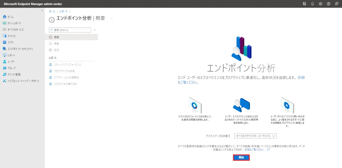 プロアクティブな修復を利用するには、まずエンドポイント分析機能の有効化とプロファイルの配布が必要となります。