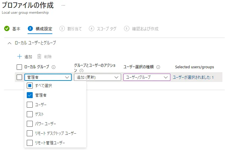 今回は [Users 権限を監視するパッケージ] と [Administrators 権限を付与するパッケージ] の2つを作成し、専用のデバイスグループをリンクさせる形でメンバーにアサインします。