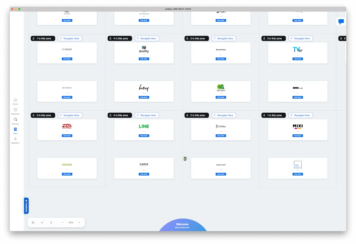 - Expo内でNavigate here というボタンを押せば飛べるが、行きたいBoothを探すのがそもそも難しい。