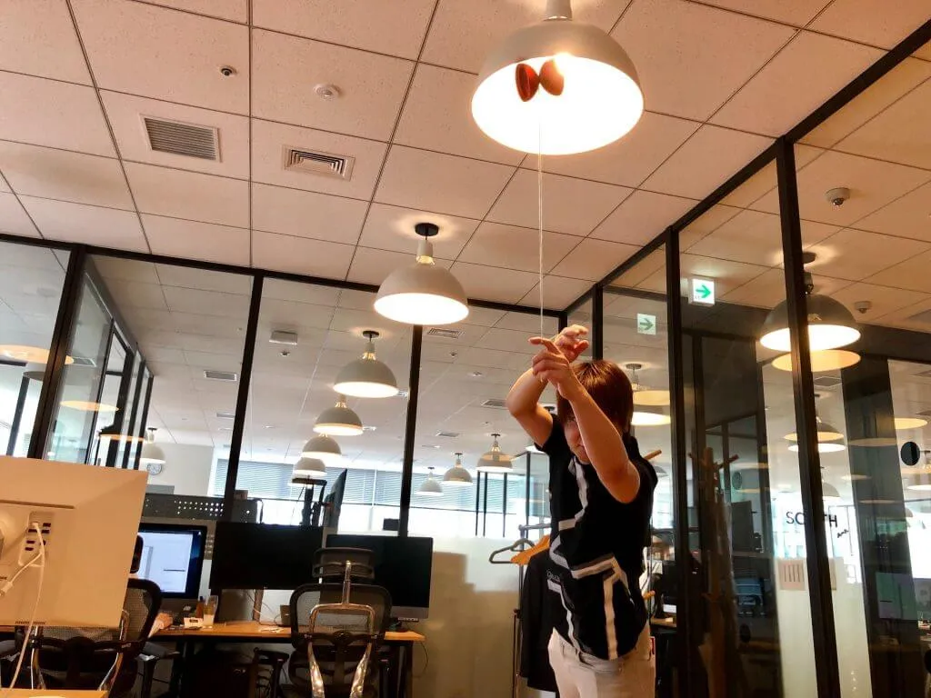 (↑オフィスでヨーヨーをする代表のシンジ)