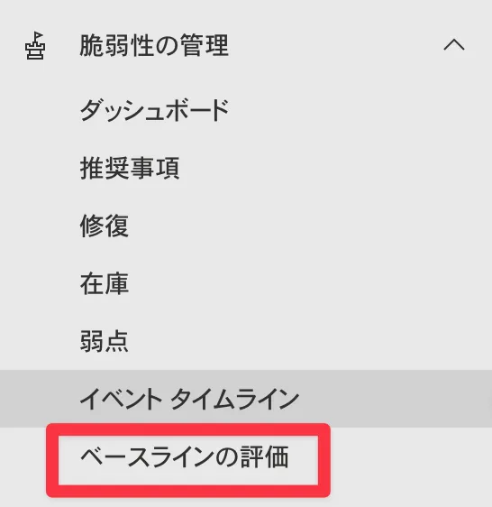 一番わかり易いメニューは、「脆弱性の管理」に「ベースラインの評価」という項目が増えるので、こちらが表示されてくればadd-onが有効になっています。