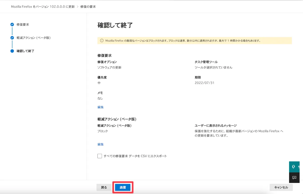 - 設定内容を確認し、問題がなければ【送信】をクリックします。