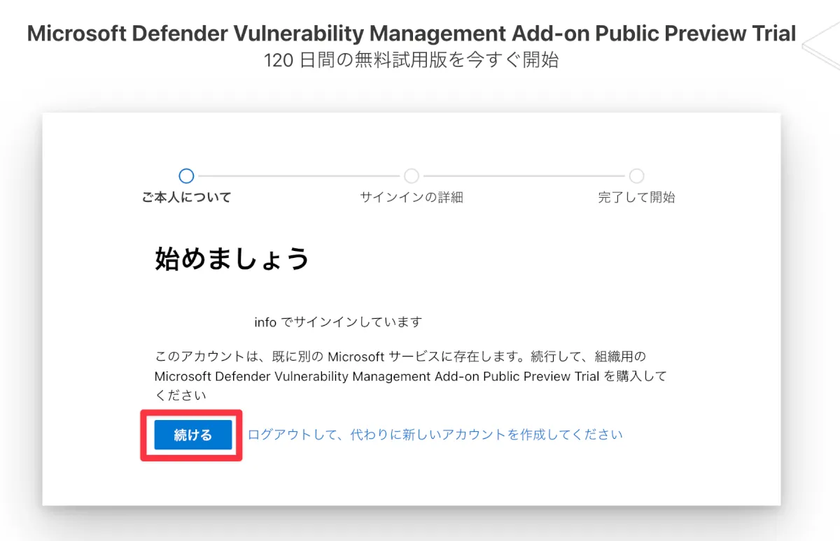 - 【続ける】をクリックします。