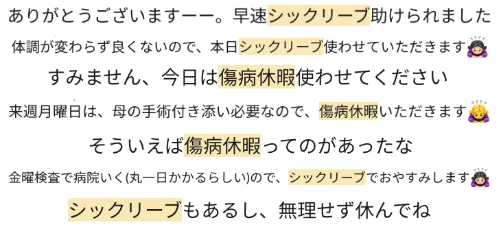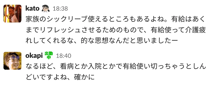 - 逆にシックリーブが使えて有給減らないのは嬉しい。