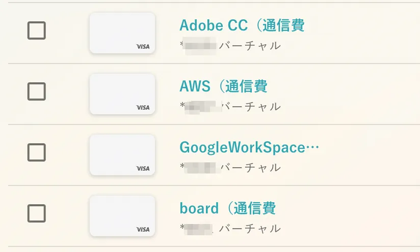 希望社員のリアルカード以外は、各種支払いごとにバーチャルカードを発行しています。現在社員カードを除いたカードの発行数は約80枚を超えています。そのくらい細かく支払いを分けています。
