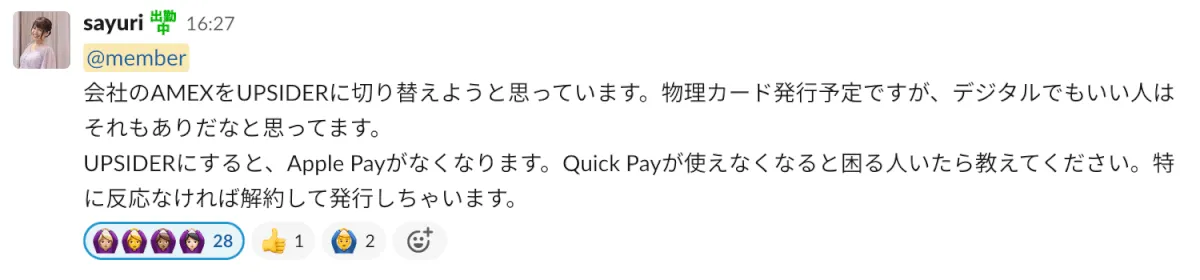 クラウドネイティブでは社員全員にクレジットカードを配布しています。今回はそのクレジットカードをAmexからUPSIDERに変更したお話をしたいと思います。