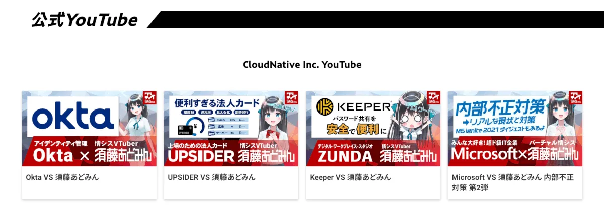 例)クラウドネイティブYouTube:https://www.youtube.com/channel/UCrzszPC7sBgc7jA6sC8nzRw