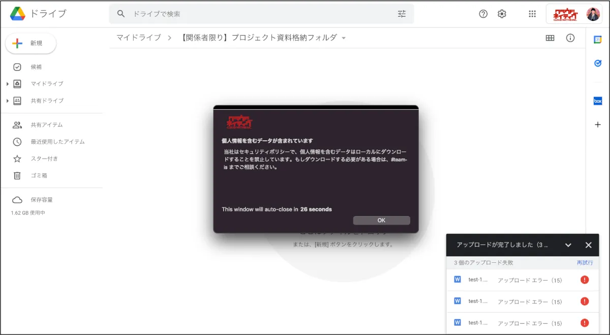 前提として、NetskopeのCASB・SWGでは、Real-time Protectionポリシーで許可されていない操作をした際には、ユーザーに対してポップアップを出してアラートを提示することができます。
