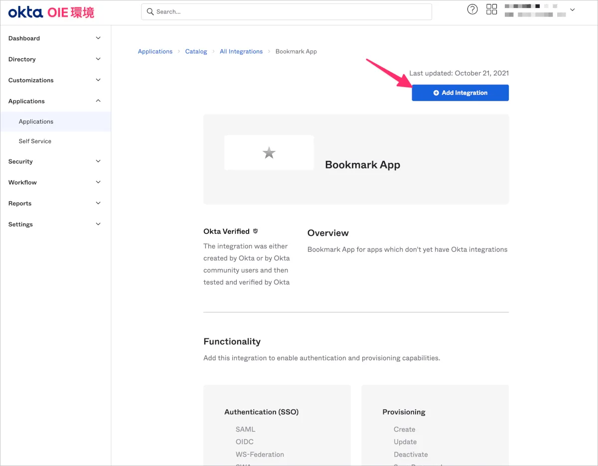 これらの設定を行ったのちにSSO設定を徐々にClassic環境からOIE環境へSP移行します。移行が完了したタイミングでアプリケーション用のブックマークアプリは削除します。