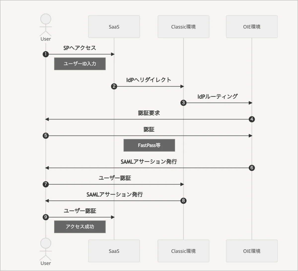 - ユーザーがFastPass等を利用しOIE環境に対して認証を行う