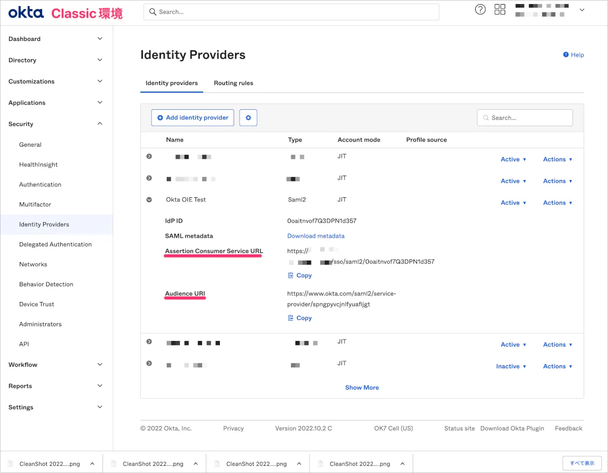 ただこの設定はOkta管理画面には反映されないため、作業時はClassic環境とOIE環境どちらの環境を設定しているかを見失いがちになります。ブラウザーのタブグループの活用やウィンドウを分けるなど工夫しましょう。