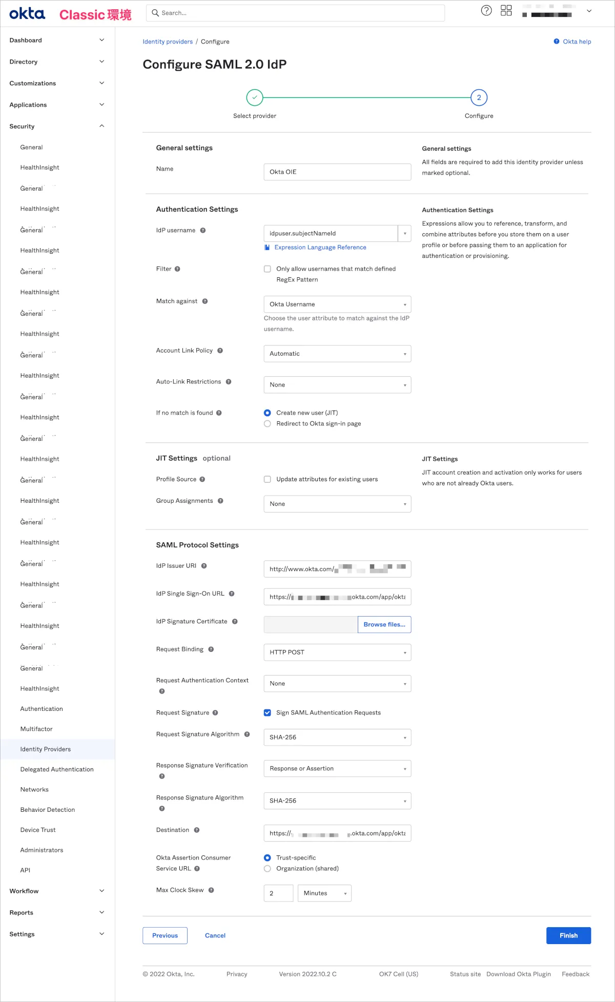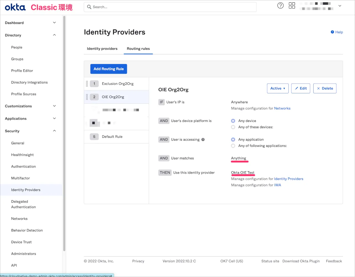 そこで以降ではClassic環境からの認証つまりSP-Initの場合であってもOIE環境の認証情報のみを利用できるようにIdPルーティング設定を行います。