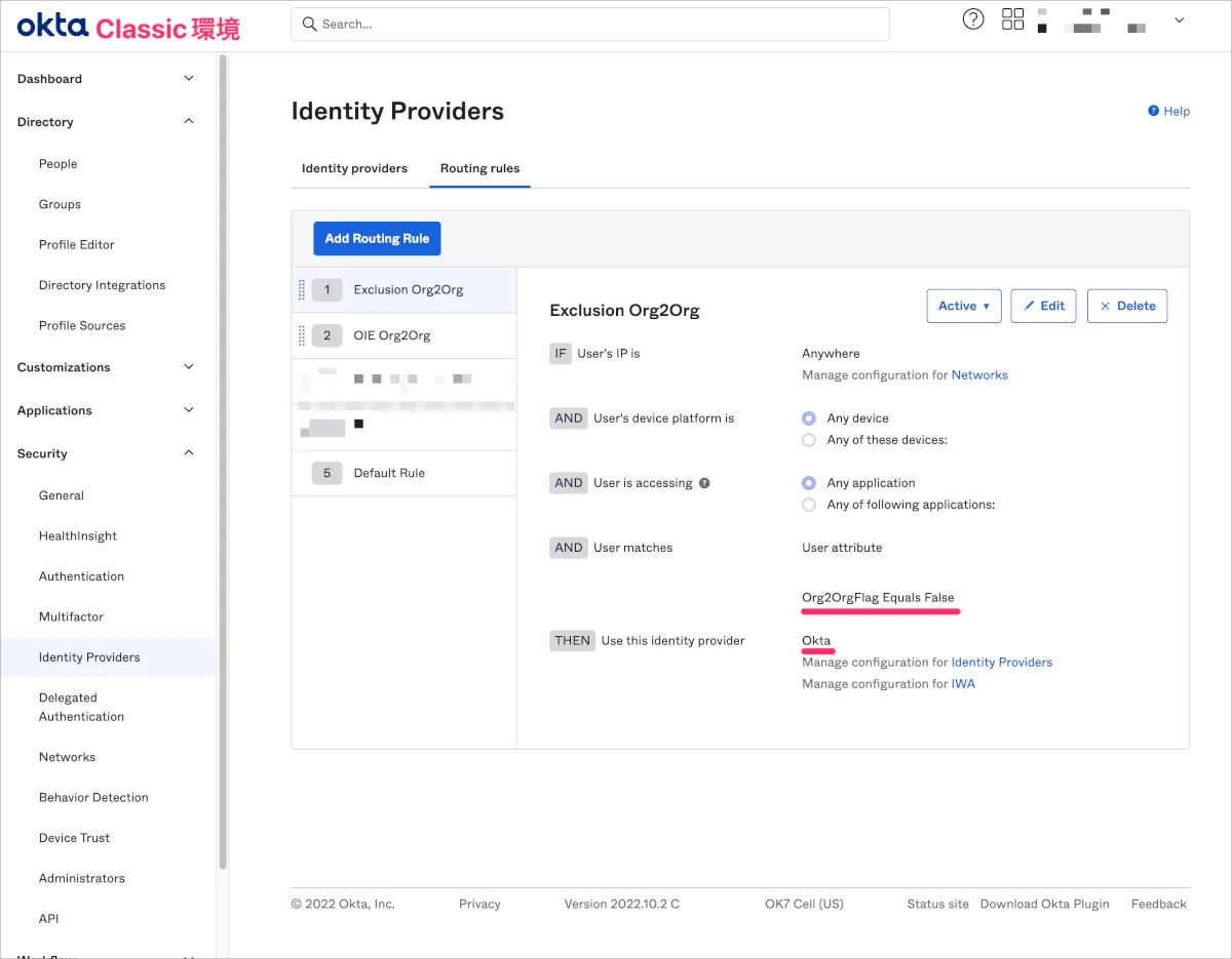 - 以下のようにIdPルーティングを行うユーザー用のRuleを作成します。