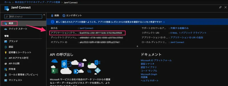 これで AzureAD との統合作業は完了です。この後の作業で登録した Jamf Connect の アプリケーション (クライアント) ID が必要になるので控えておいてください。
