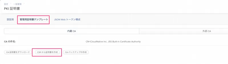 - [管理証明書テンプレート] > [CSRから証明書を作成] をクリックします。