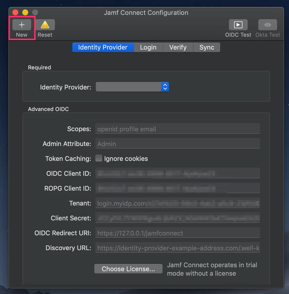 - Jamf Connect Configuration を起動して、[+New] をクリックします。