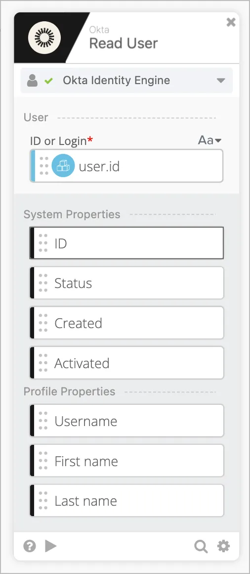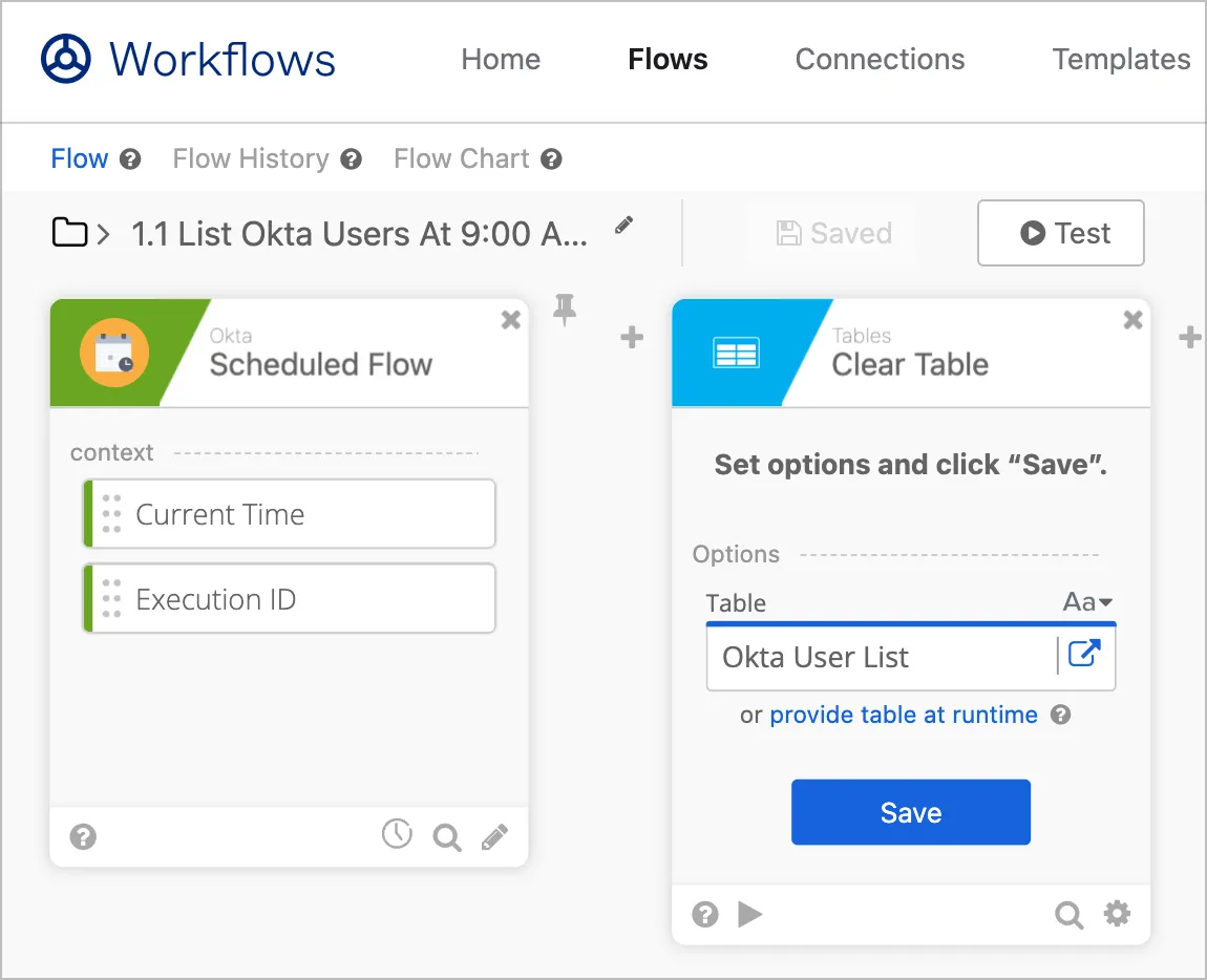 このカードではOkta Workflows内に存在するテーブルのデータを検索します。