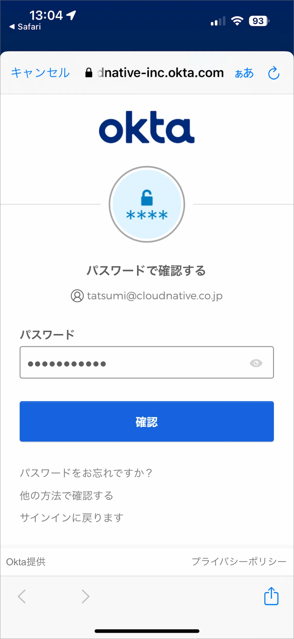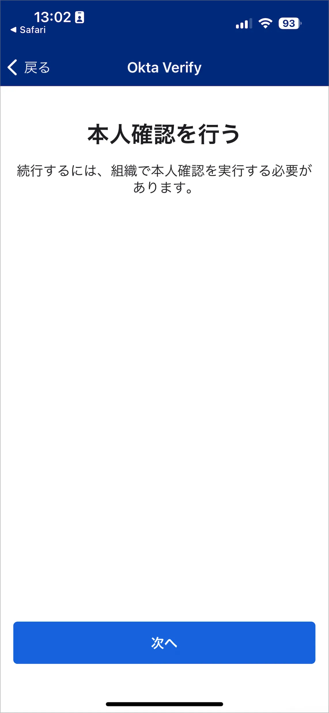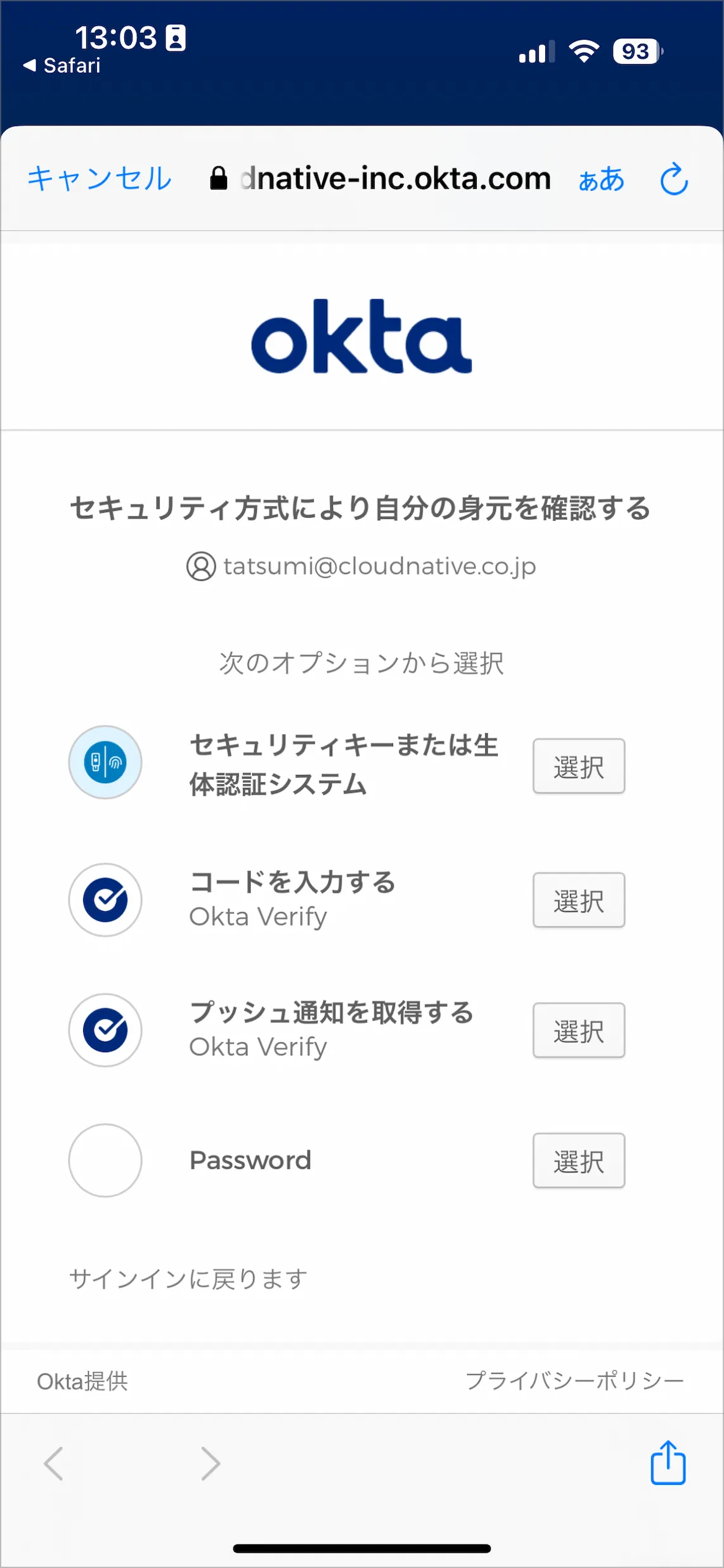 - サインインが完了したため、画面左上のOkta Verifyアプリを呼び出したSafariの部分をタップします。