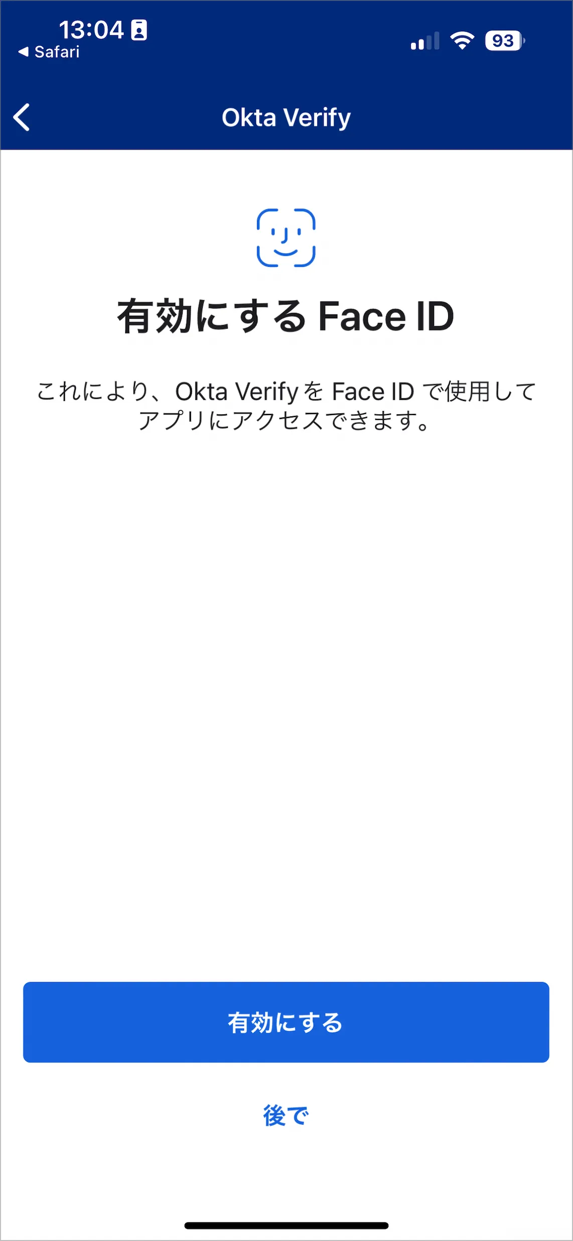 - Face IDの有効化が聞かれるので有効にするをタップしFace ID認証を行います。