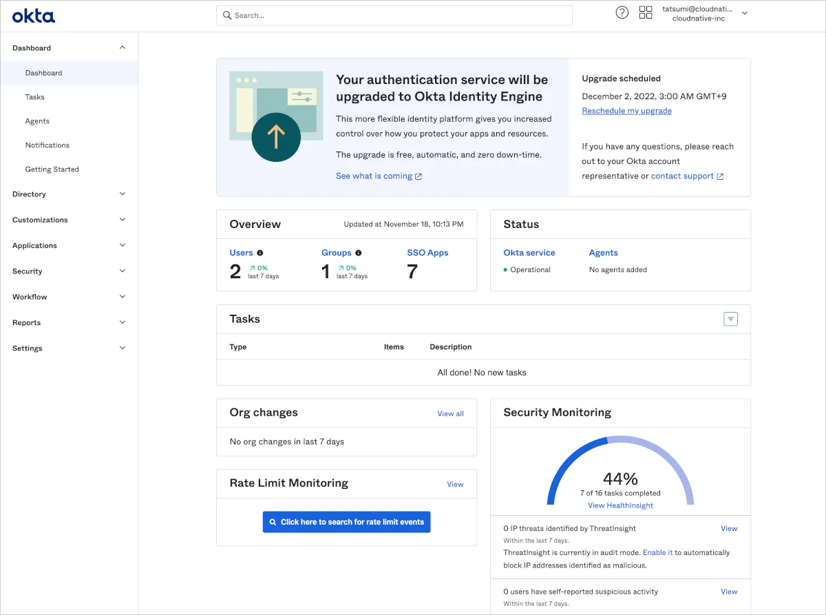 ユーザー体験としてはアップグレードされたことを感じることはありませんでした。もちろんOktaによる各アプリケーションへのSSOなども問題なく行える状態でした。