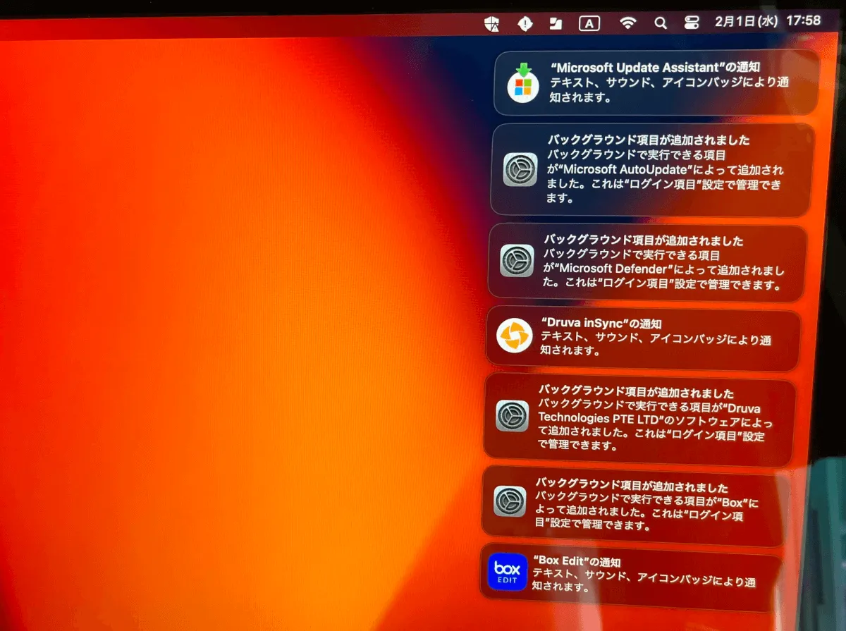 再起動後のMacのログイン画面