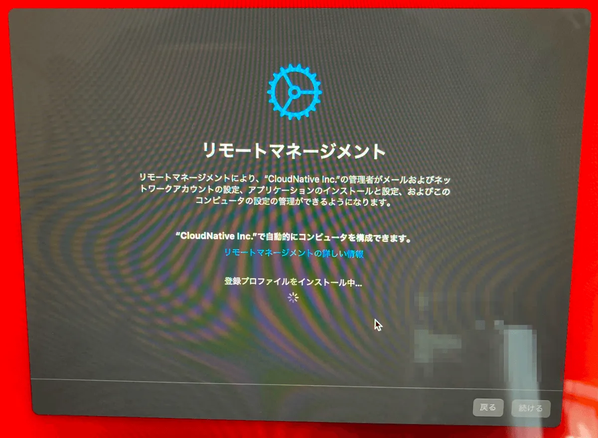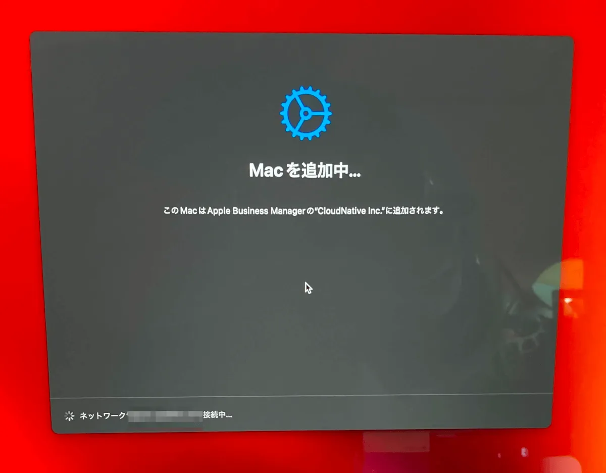 そしてABM(=AppleBusinessManager)上に端末情報の登録が完了すると、以下のような画面に切り替わりますが、まだ今の段階では再起動を行ってはいけません。