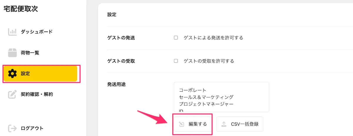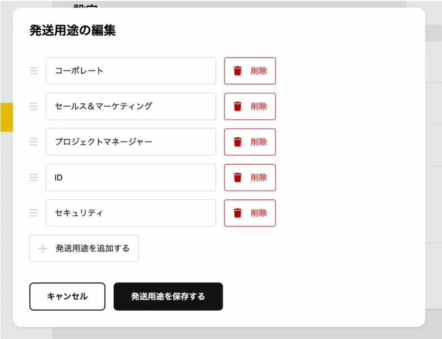 設定から、ワークスペースの発送用途の編集を登録しておくと便利です!