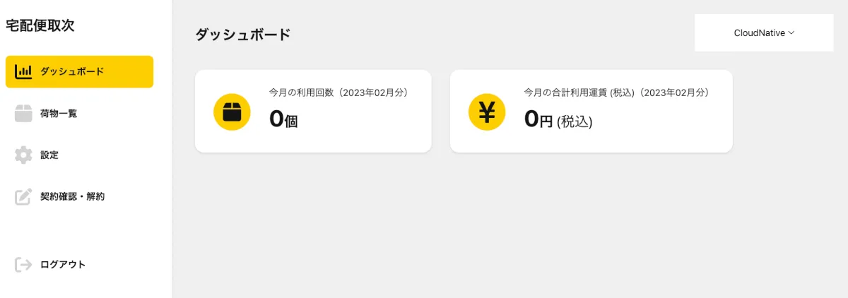 支払い方法の変更等は、宅配便取次用のダッシュボード上で行えます。荷物の管理などもこのダッシュボード上で行います。