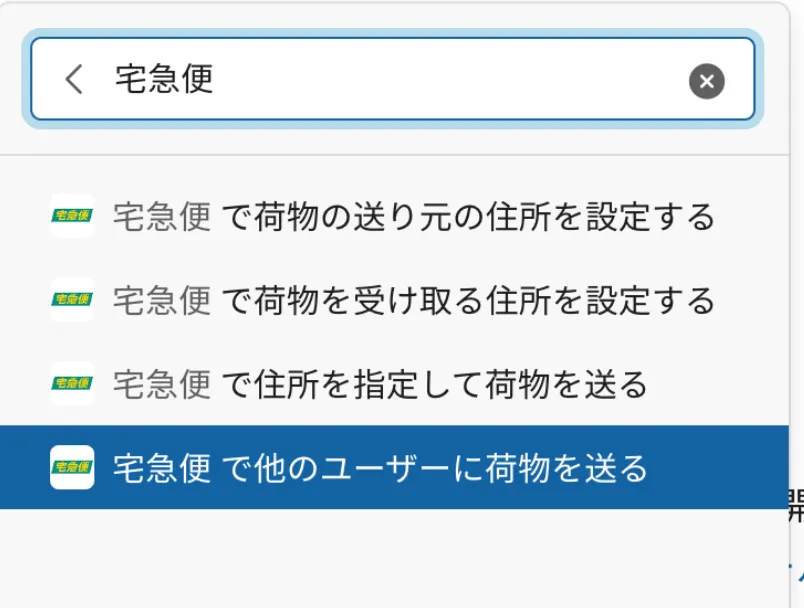 1. Slackのショートカット検索バーから【宅配便で他のユーザーに荷物を送る】を選択。