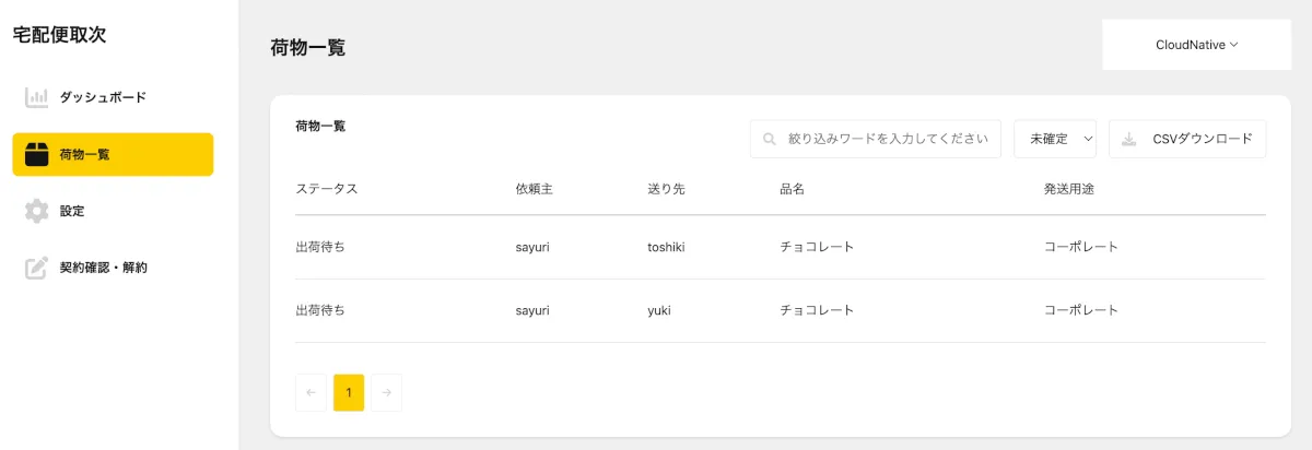 また、CSVでのダウンロードもできます!宅配便の数が多い会社さんにとっては、発送用途をいれることによって、【A部署で今月○○万円使ってる】などが簡単にデータとして取れます。