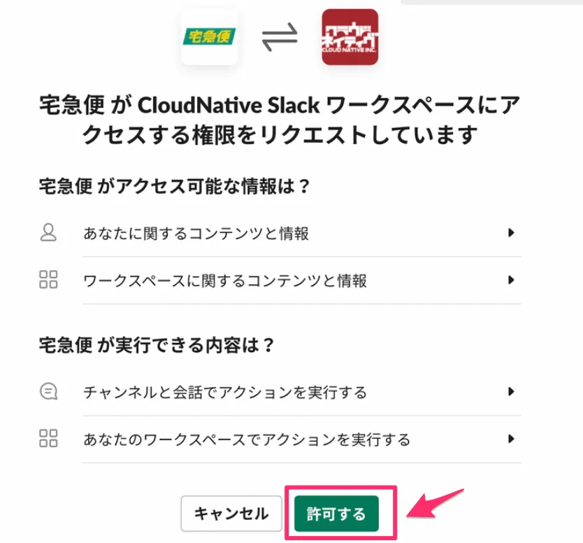 Slackに追加するボタンを押して、Slack側でもアプリをクリックすると、ほらね。